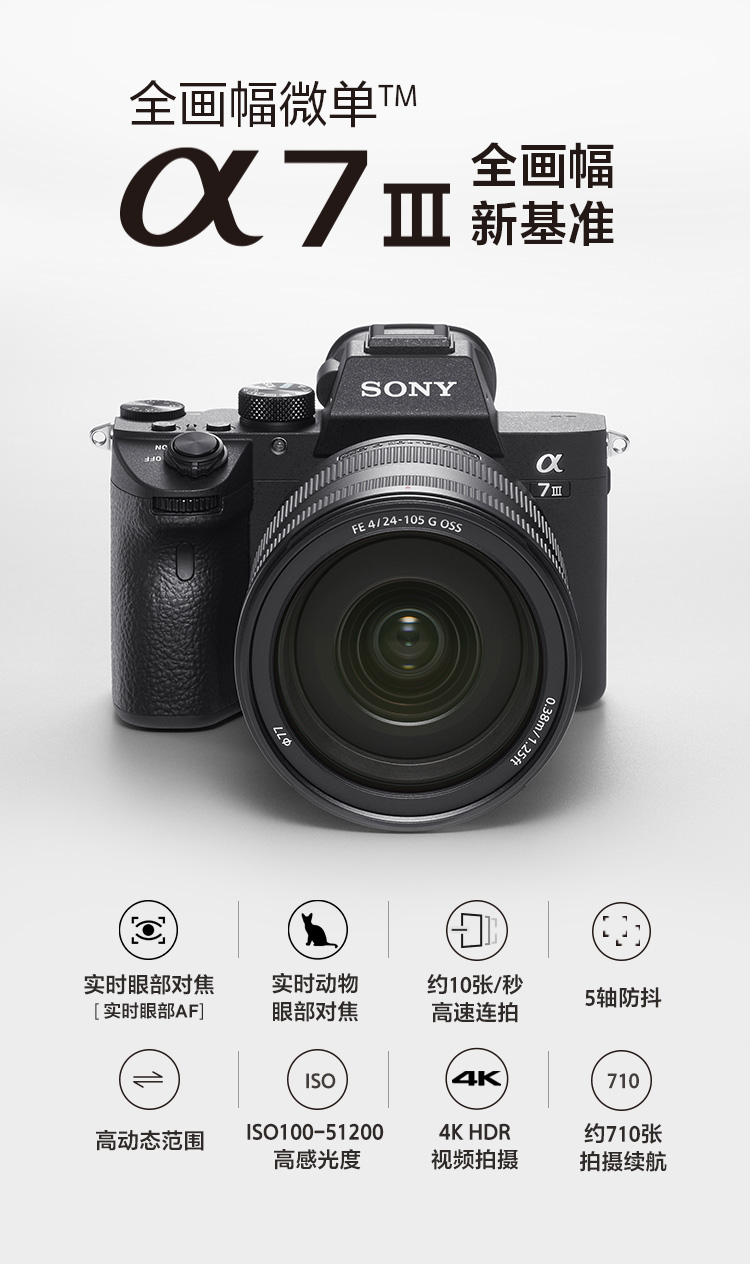 【微单相机TOP明星机型,A7M3系列京东销量4万+】新款28-60mm镜头套装,体积进一步缩小,更加便携!实时眼部对焦,支持4K-HDR专业视频格式录制!